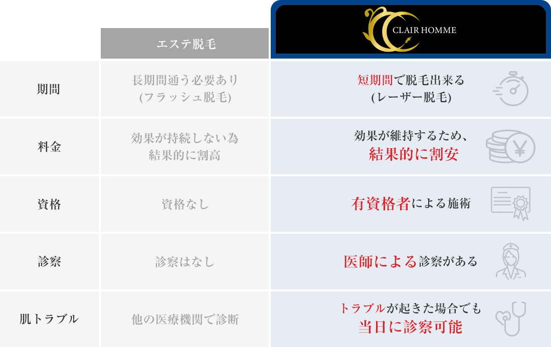 クレアオムの医療脱毛はレーザー脱毛器による違いのみならず、使用機器は全て厚生労働省より薬事承認を受けている医療脱毛機器です。